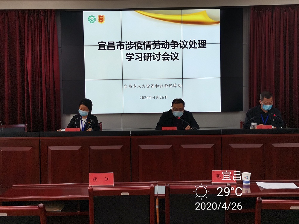 4月26日下午,宜昌市涉疫情劳动人事争议处理业务培训会议在市人社局成功举行,市人社局党组成员、副局长张宏劬参加指导,并讲话。市劳动人事争议仲裁院(局仲裁科)、宜都市、夷陵区及城区各区劳动人事争议仲裁负责人参加了本次业务培训。