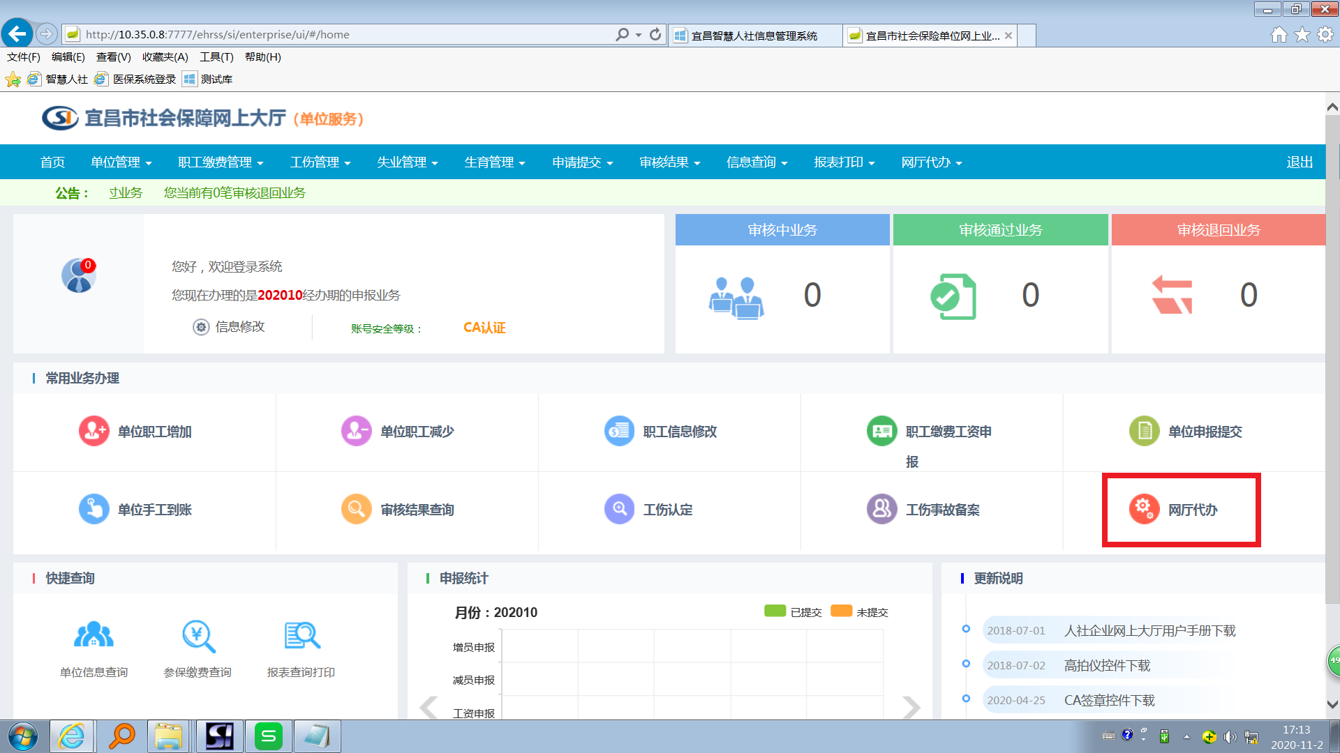 据悉,这四项社保业务多为参保单位出现经营异常情况后办理的事项,需要涉及到税务、社保经办机构等多个部门的关联资料,以往采取的“现场+邮箱”的办理模式,对一些早已离开宜昌的外地经办人员来说较为不便。此次接入“智慧人社”网办平台后,相关申请表格以及办理事项也全部上传至平台页面,单位经办人员可通过智慧人社系统直接在线上进行申报操作,从而解决了非正常缴费单位“来回跑腿”的问题。